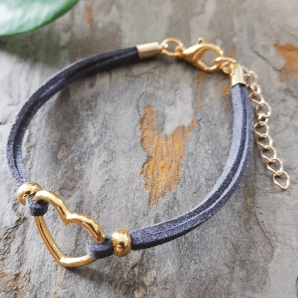 Een stoer donkergrijs armbandje van imitatie suede veters en een lief hartje. Het donkergrijs combineert heel mooi bij heel veel kleuren, zowel in de winter als in de zomer. Het is echt een armbandje wat je het hele jaar door kunt dragen. Heet armbandje kan goed gecombineerd worden in een set armbanden, maar hij kan ook heel goed als eenling om de pols. Het is een leuke basisarmband waar je alle kanten mee op kunt.