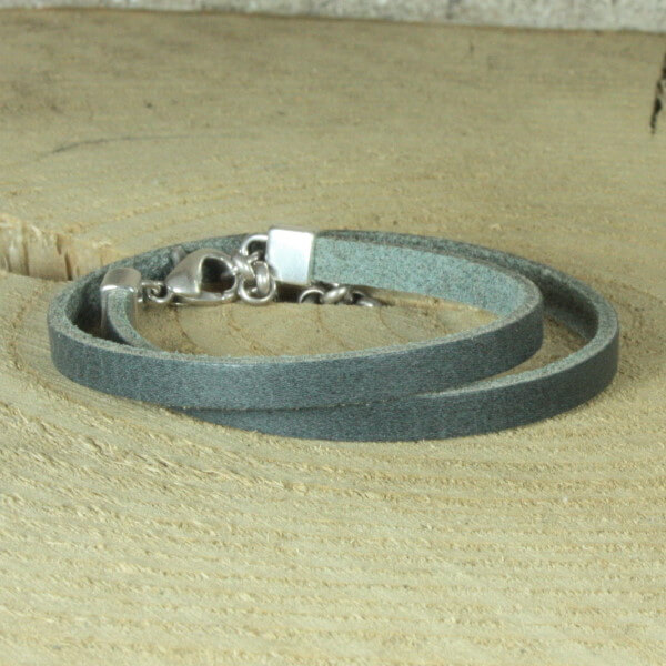 Deze wikkelarmband bestaat uit één lange stevige leren band van 5 mm breed en 2 mm dik. De armband gaat twee keer om je pols. Het leer en de sluiting zijn van zeer hoogwaardige kwaliteit. De metalen onderdelen zijn silverplated en uiteraard nikkelvrij. Deze wikkelarmband blijft dus lekker lang mooi en de metalen zijn ook nog op te poetsen als ze wat dof worden.